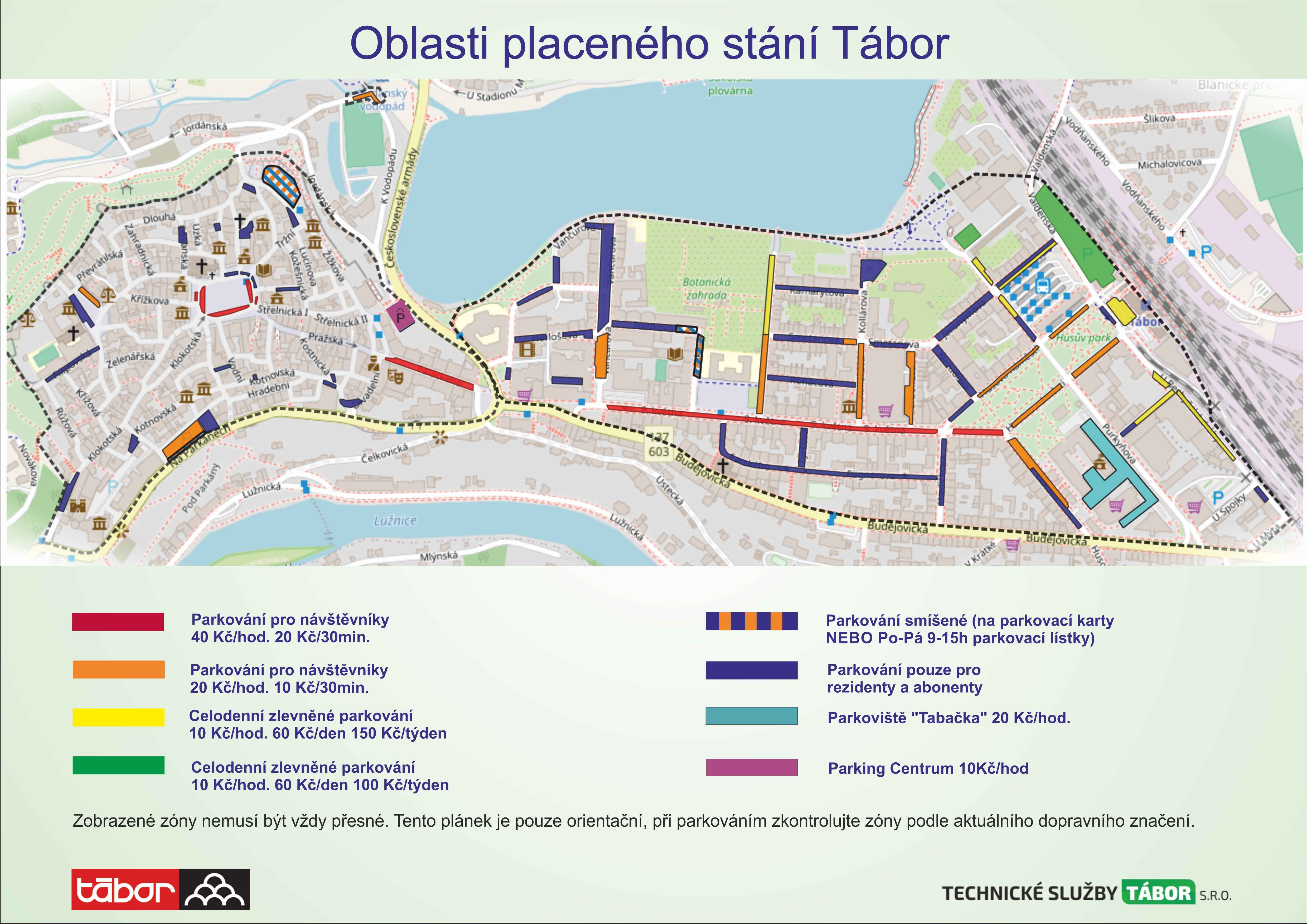 Mapa oblasti placeného stání Tábor